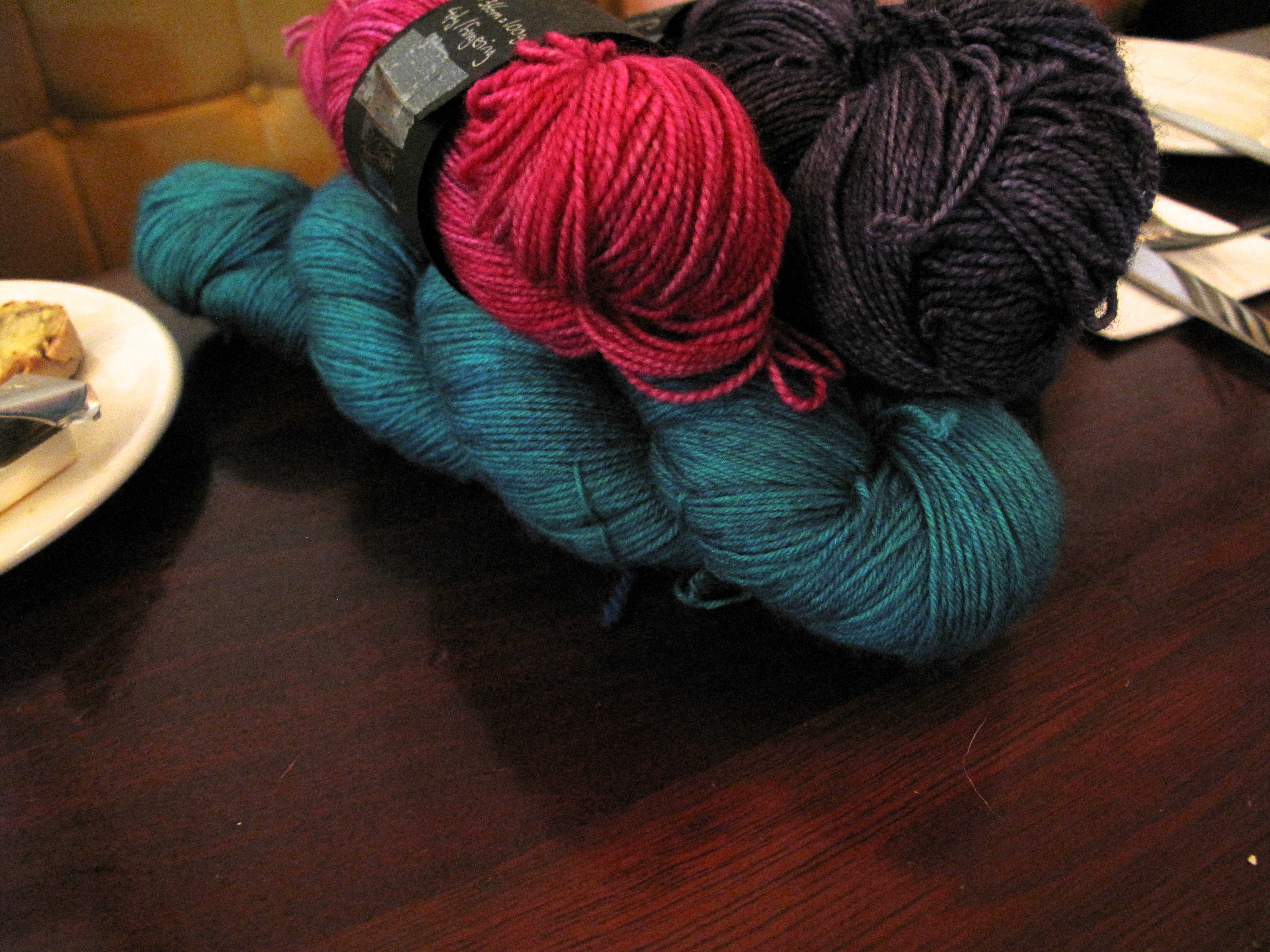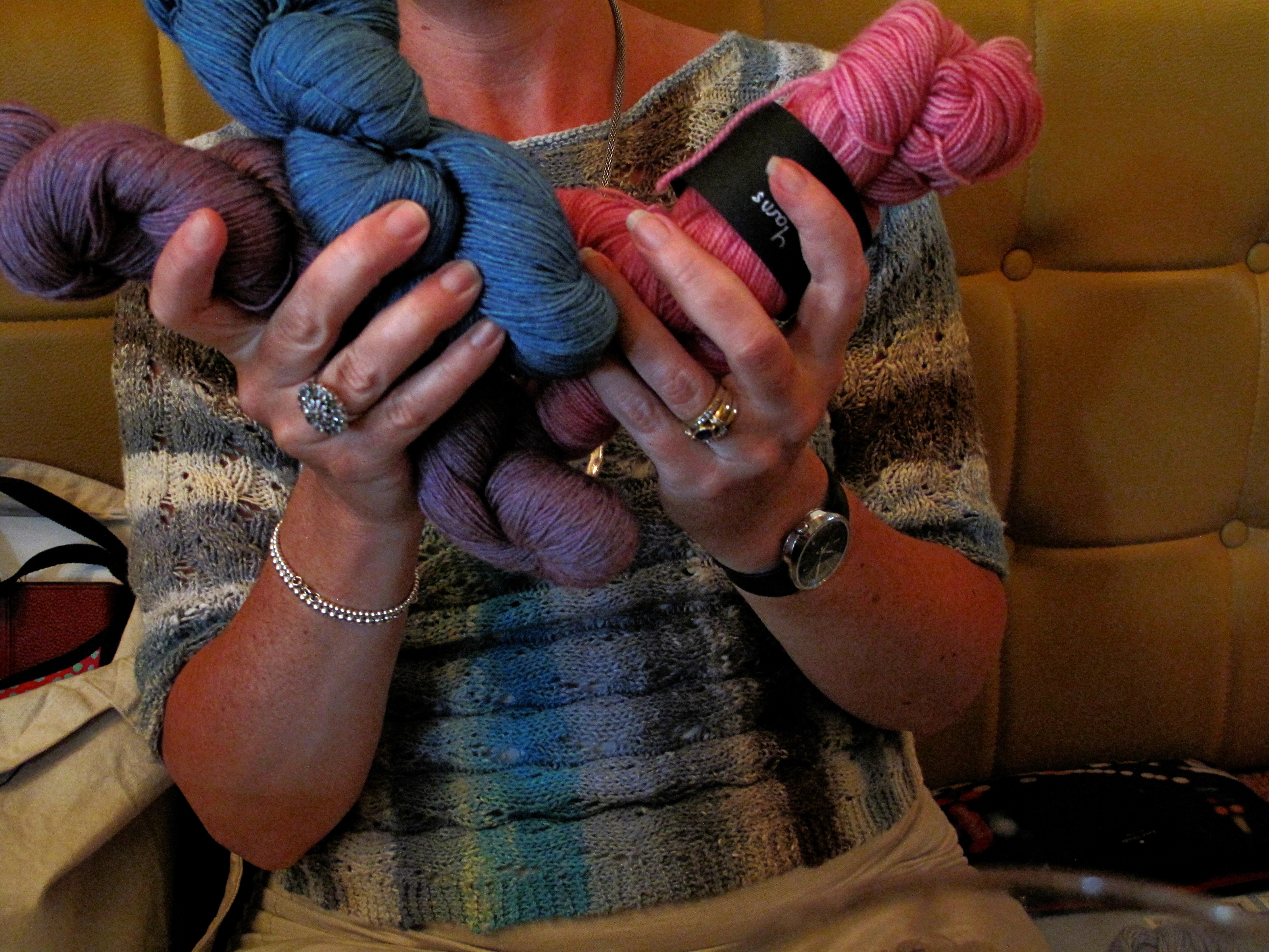Yarn choices were made, and then remade around the table at Richmond Knitters last night.