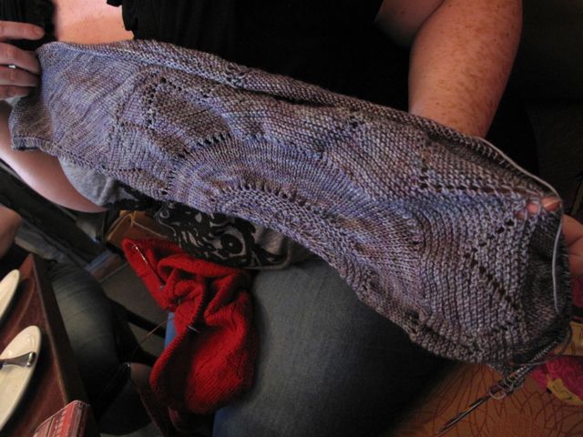 It can’t really be spoilers now that it’s Thursday! Here’s a wrap up of all the shawls that made it to Richmond Knitters on a hot and public holiday evening, the dedication amazes me.